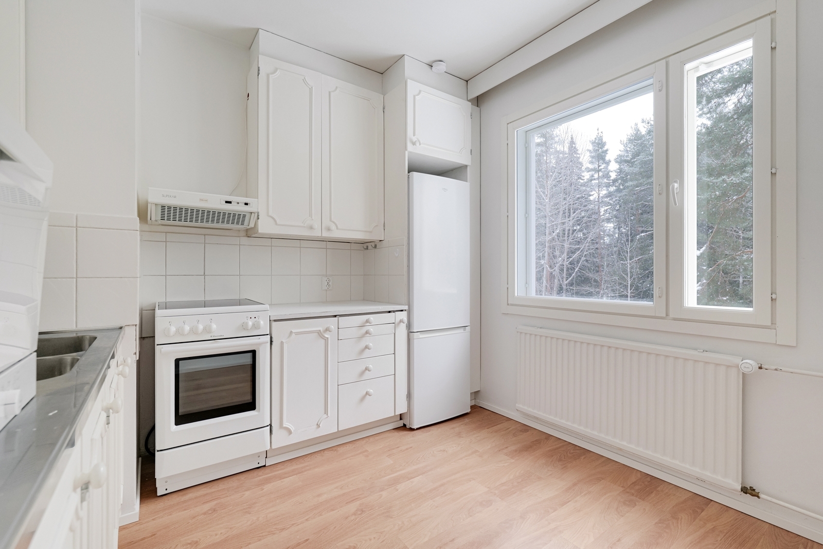 Varusteet: jääkaappipakastin, keraaminen liesi, liesituuletin