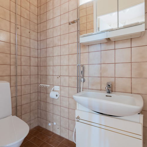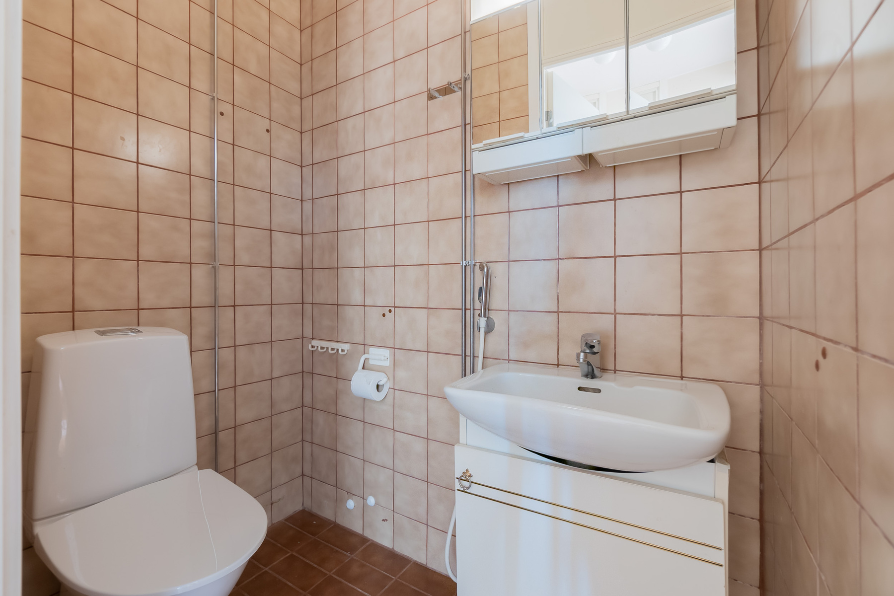 Asunnossa on erillinen kylpyhuone ja wc, mikä lisää asumismukavuutta erityisesti perheille ja vieraita vastaanotettaessa.