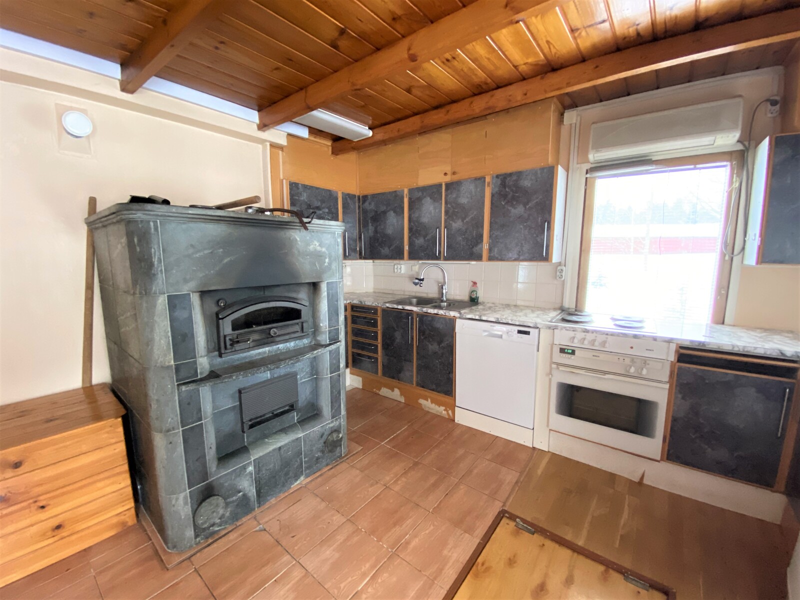 Varusteet: jääkaappipakastin, astianpesukone, sähköliesi, leivinuuni, pesukoneliitäntä