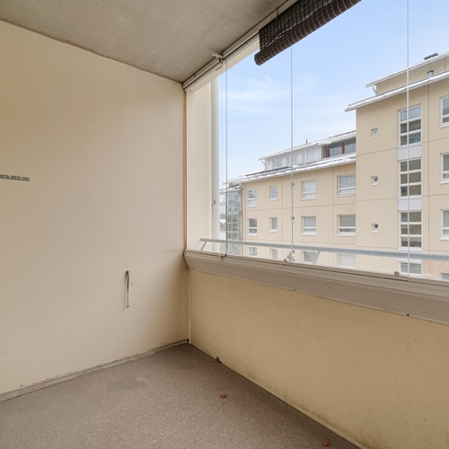 Olohuoneesta käynti lasitetulle parvekkeelle