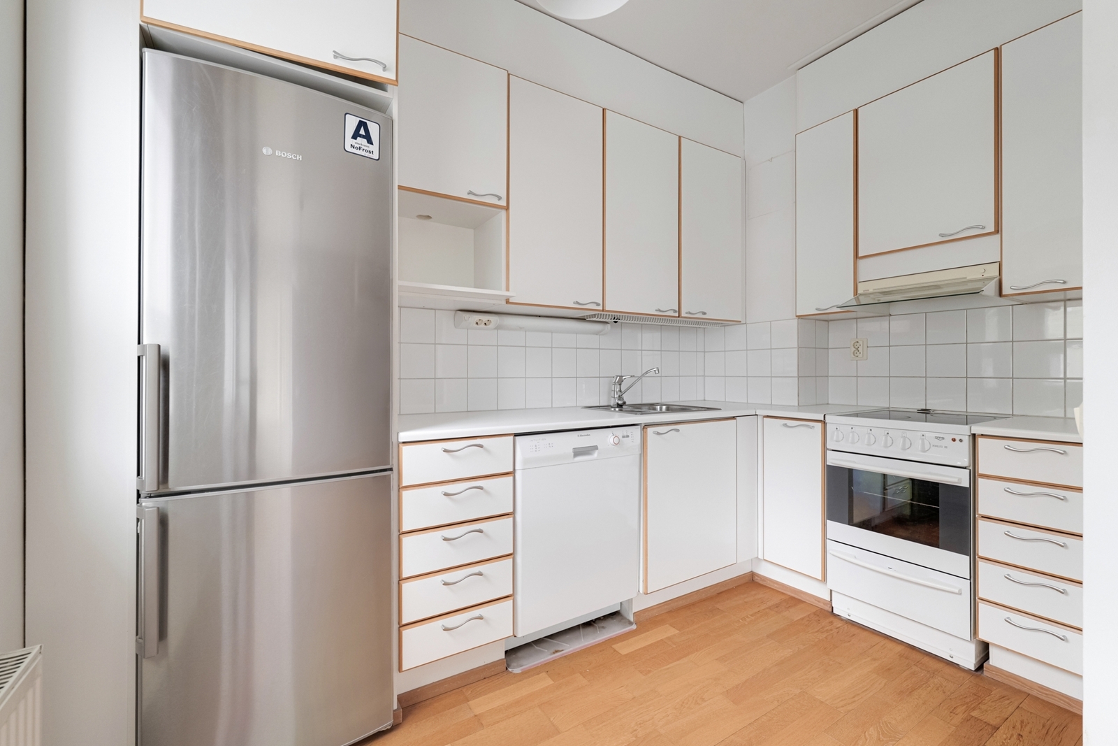 Varusteet: jääkaappipakastin, astianpesukone, keraaminen liesi, liesituuletin